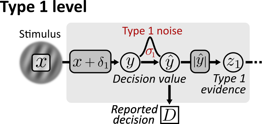Confidence is regarded as a metacognitive variable and thus identifies as a mental representation of another mental representation. In the case of confidence, the other mental representation is the decision variable that guided our original decision about which we are about to express a sense of confidence. As a consequence, a good model of confidence needs to model the construction of the decision variable — the type 1 stage — as precisely as possible.
